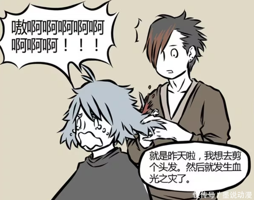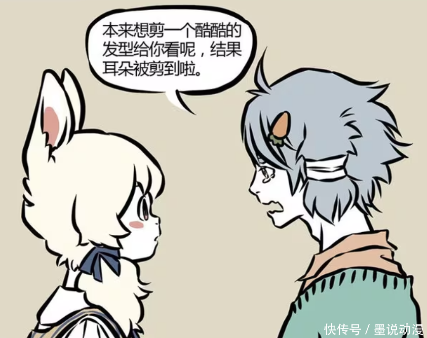 哮天原本想要剪头发,去找了托尼老师。只不过这托尼老师并没有剪好哮天的头发,还把他的耳朵给剪了。哮天的耳朵看起来比较隐秘,很容易被误会是头发。哮天被剪到耳朵之后,当场就哭了起来。