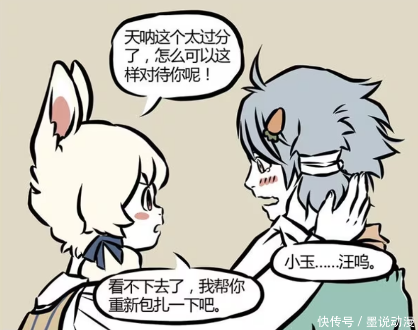 小玉罕见对哮天这么温柔,还觉得托尼老师太过分,怎么可以这么对待哮天。小玉看不下去,还打算重新给哮天包扎。看到小玉这么温柔体贴,哮天的内心都要被融化。