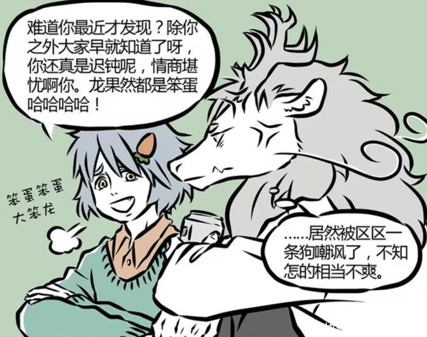 哮天还吐槽敖烈,难道他是最近才发现。这件事除了敖烈之外,其他人早就知道。哮天还嘲笑敖烈很迟钝,情商还堪忧,甚至上升到龙身上。敖烈很是不爽,明明是他陪哮天聊天,结果自己被嘲讽。